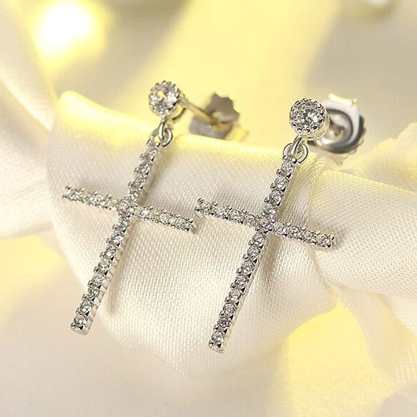 Boucles d’oreilles croix pendantes en diamants pour une élégance parfaite